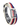 - Stainless steel case with a white, red and navy stripe fabric (double wrap) strap.