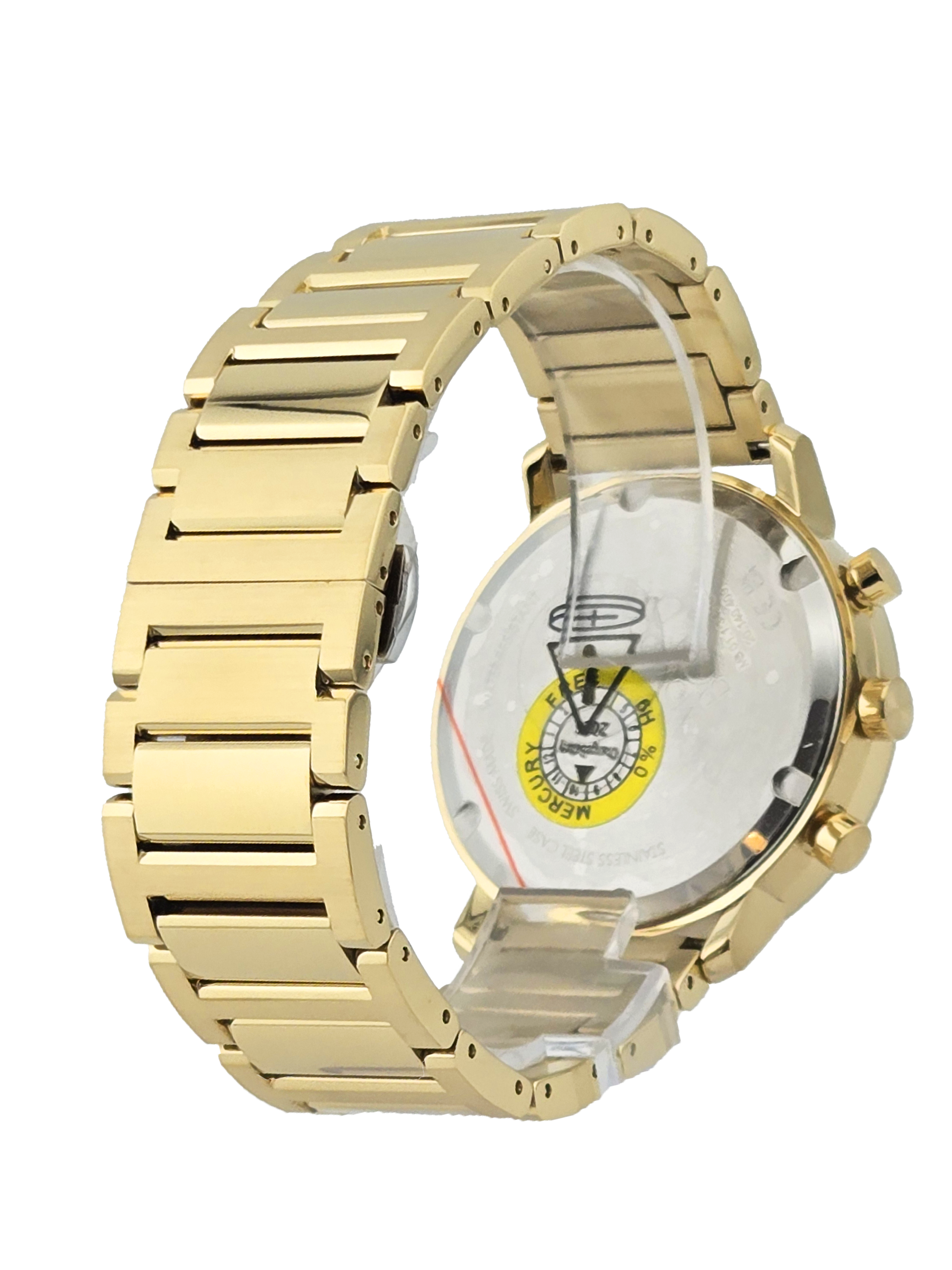 - Yellow gold IP stainless steel case and bracelet.