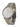 - Silver dial with yellow gold-tone hands and index hour markers.