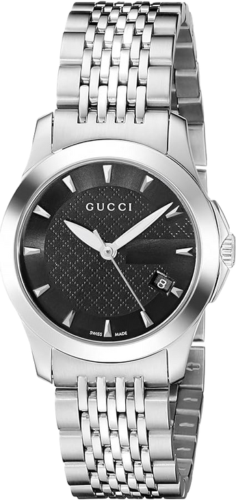 Discover timeless elegance with the Gucci G-Timeless YA126502 Women’s Black Dial Watch. Featuring precise quartz movement, this 27mm timepiece boasts a scratch-resistant sapphire crystal and a sleek black dial. With a slim 7mm case, 14mm band width, and water resistance of 30m, it combines style and functionality effortlessly. Enjoy hours, minutes, seconds, and date features—all in one stunning watch!