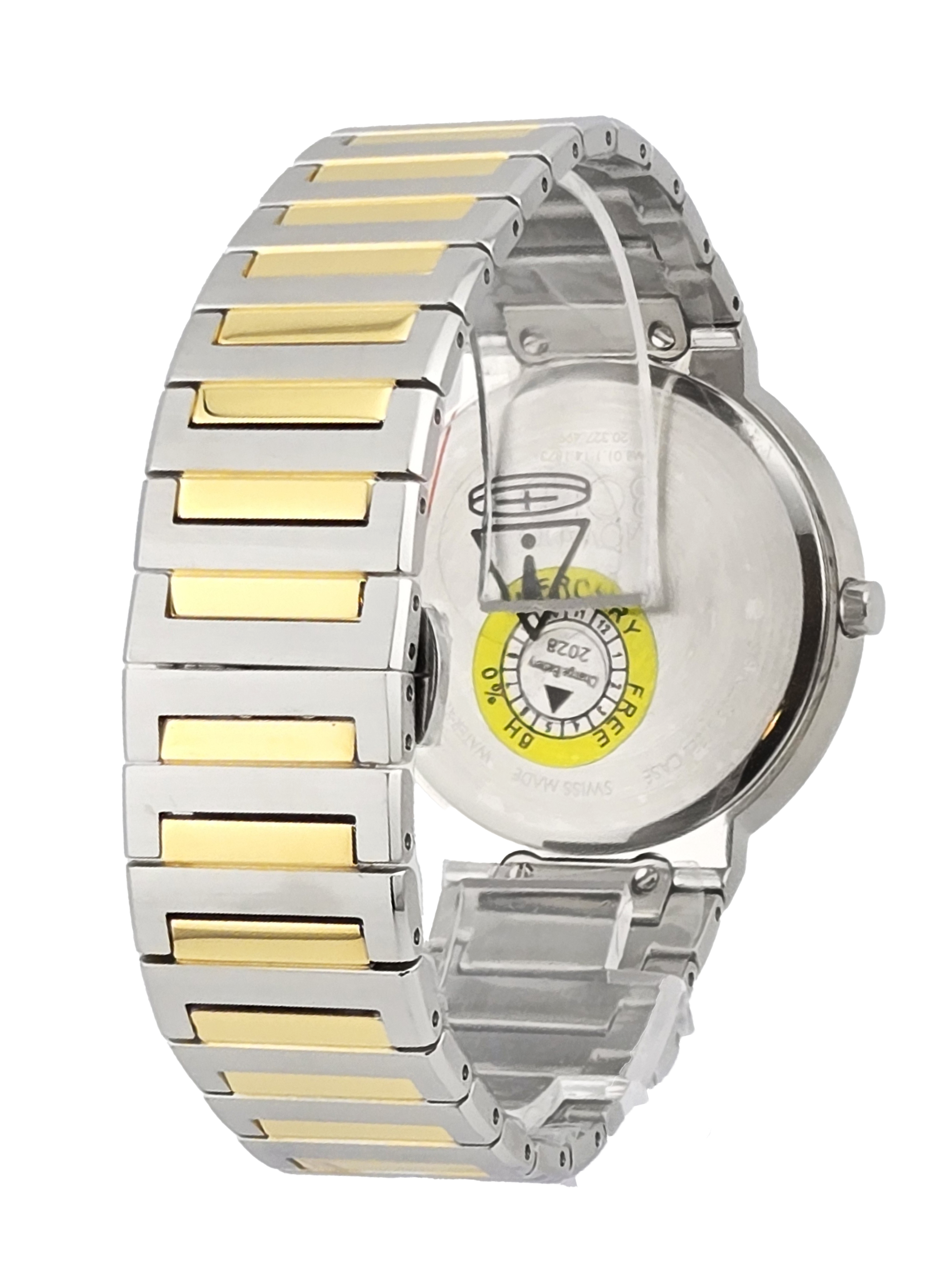 - Silver-tone stainless steel case with a two-tone (silver-tone and yellow gold-tone) stainless steel bracelet.