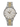 - Silver dial with yellow gold-tone hands and index hour markers.